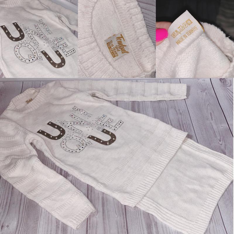 Туника молочного цвета на девочку 13-14 лет. Производитель:Турция Впереди короче,сзади длиннее,очень тёплая. Новая,без бирки.