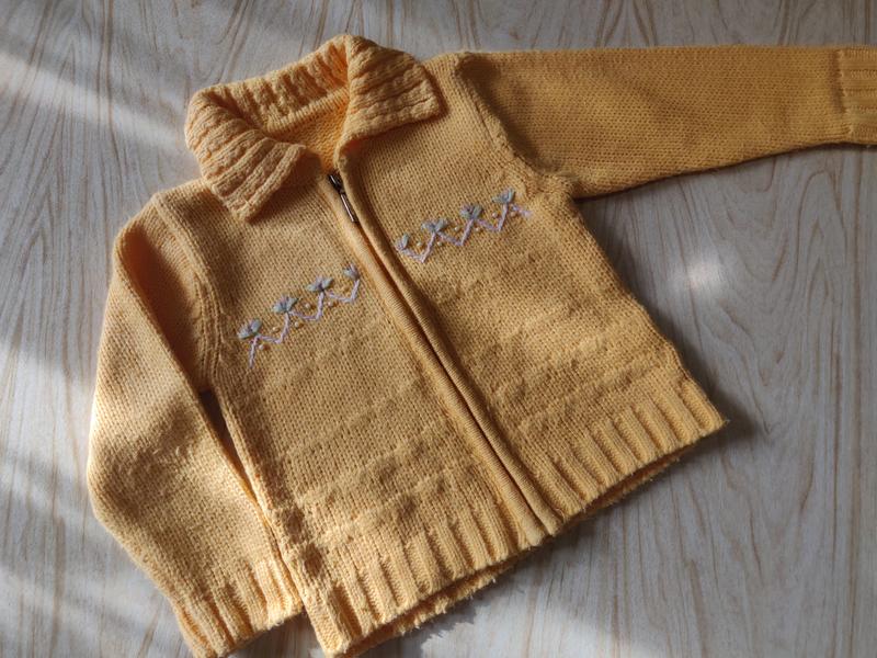 Продам яркую кофточку на девочку. Б/у, но в очень хорошем состоянии. Размер 4- 5 лет. Подойдёт на рост 104 -110см. Ярко жёлтого цвета. Украшена вышивкой и бусинками. Застегивается на молнию.Кофточка полностью соответствует фото. Пересылаю УкрПочтой, НовойПочтой, за счёт покупателя, согласно тарифов перевозчика. Возврат не предусмотрен!!!