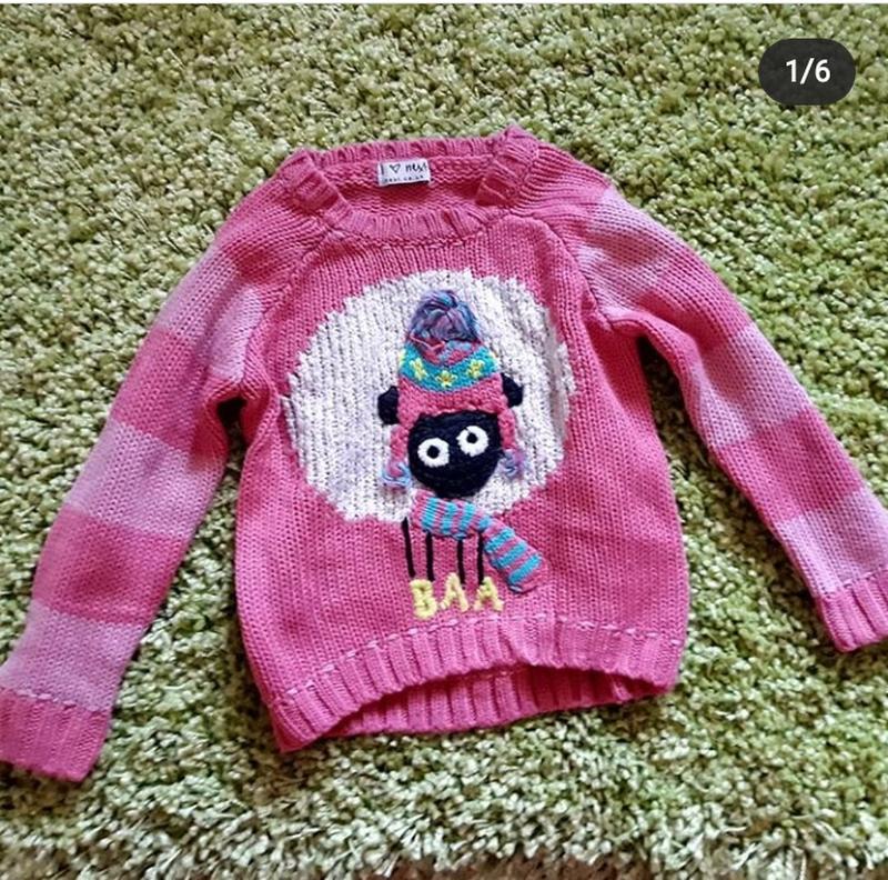 Вязаный свитер фирмы Next,размер 12-18 месяцев,но до 3х лет точно будет! Замеры: Длина от плеча до низа 38/41 Ширина под ручками 31 Рукав от горловины 42