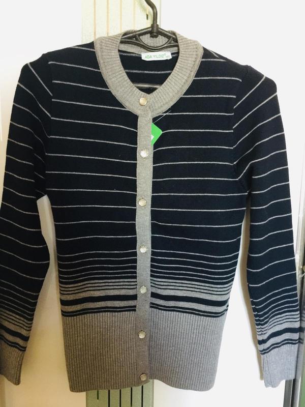 Элегантная кофта на пуговицах. для девочки. Мягкая комфортная для тела. Отлично смотрится с джинсами ,с юбкой. удобно ходить на занятия и на прогулки Состав 95% соттон , 5%-лайкра.. Размер 134, ширина груди 34см, рукав 48, длина 50 .