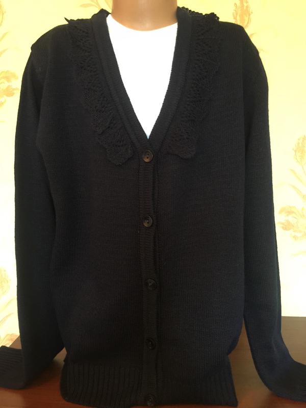 Кофта пуловер на пуговицах для девочки подростка темно-синяя. . Украина Состав 50%-шерсть, 50%-пан. Размер 146 Ширина груди 42см рукав 56см длина 55см . Размер .152 ширина груди 44-45 см длина 58см рукав 58см Очень красиво смотрится эта кофточка с блузками , свитерами.. Большой выбор .блузок , водолазок которые будут эффективно смотреться вместе, вы найдете на нашей странице.. Цена одной кофточки 160 гривен .Блузка на фото продается отдельно.