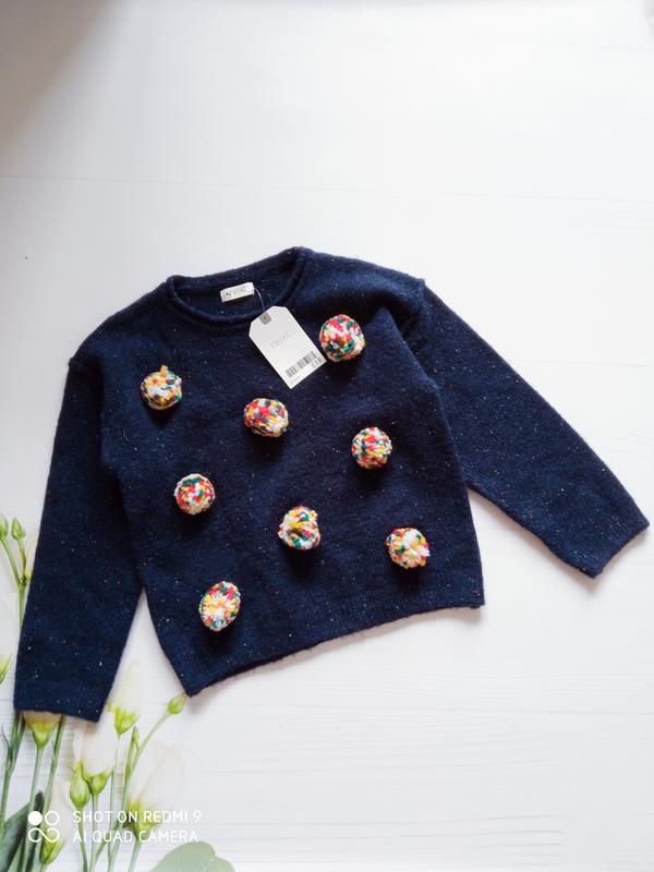 Прикольний светрик з помпонами від next на 2-3 роки , у складі шерсть не колючий. Новий з біркою. - довжина рукава від шиї-43см -пог-32.5 см - довжина по спинці від плеча-37.5 см