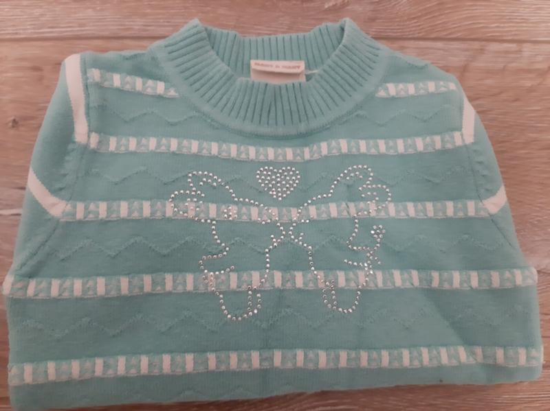 Кофта бірюзового кольору зі стразіками. Д.рукава 29.5 см Д.спинки 30 см.