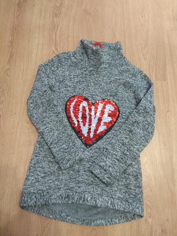 Тепленька кофточка, худі приблизно на 8-11 років, паєтки перевертаються, без дефектів. Довжина 60/65, рукав 52,5.