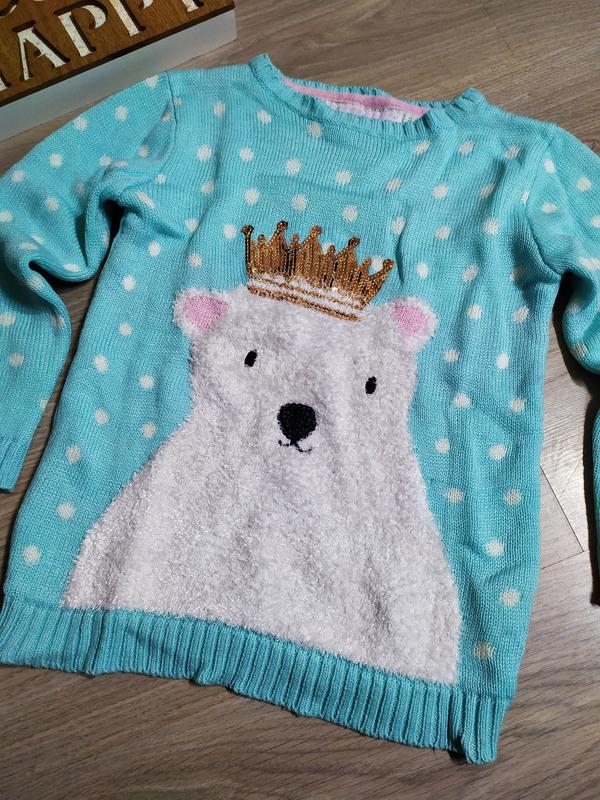 Дуже миленька, тепла кофтина світло-м'ятного кольору. З красивим пушистим ведмедем. Підійде не тільки в будні, але й на новорічні, чи різдвяні свята. Довжина 49,5 см. Пог: 33 см. Рукав: 39,5 Бренд Young Dimension.