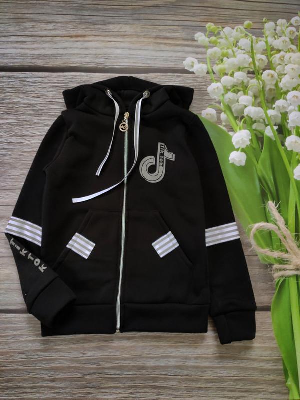 Тёплая кофта для девочки, тринить с начёсом есть два накладные кармана светоотражающие вставки цвет чёрный 128(1 шт)-длина 52,пог 36,рукав 48 164(1 шт)-длина 60,пог 46,рукав 58