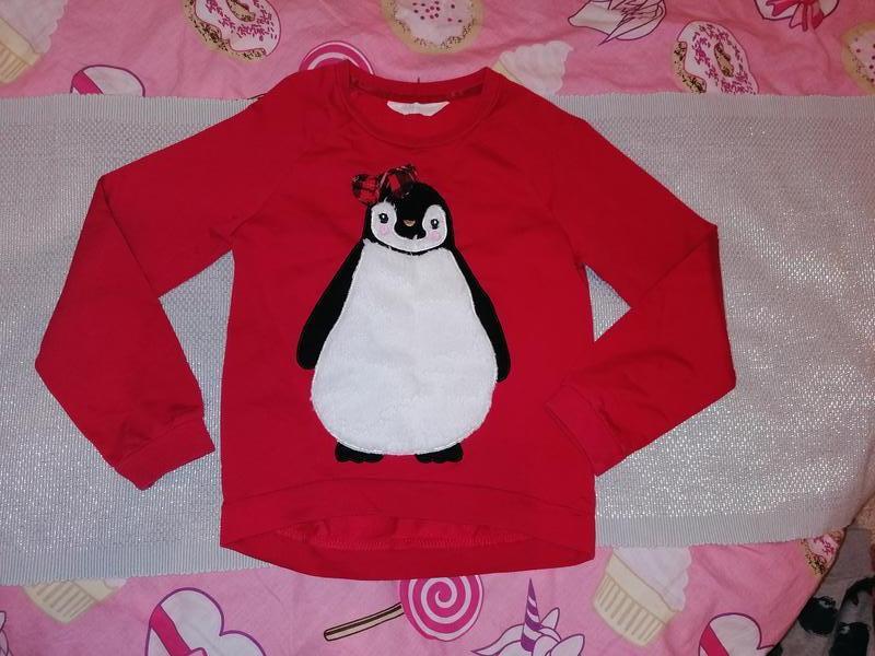 Красивый фирменный реглан с пингвином, в хорошем состоянии, на рост 122-128 см, 7-8 лет.