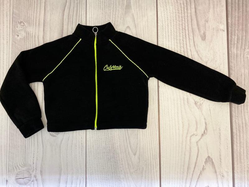 Теплая кофта с неоновыми вставками. РОст 134-140 см. Длина рукава - 57см, длина по спинке - 38 см .