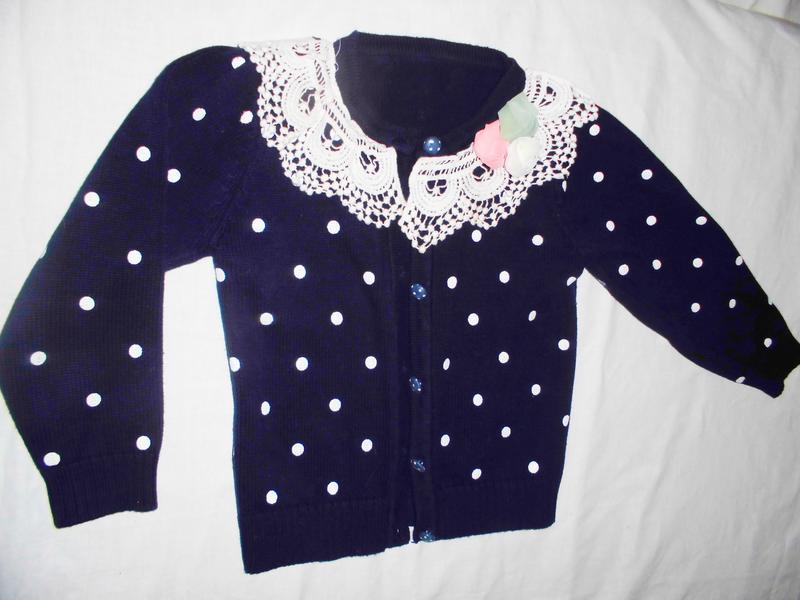 Вязаная кофточка Германия для девочки 5- 6 лет кофта б\у в СОСТОЯНИИ НОВОГО. красивый кружевной вязаный крючком воротничок , дл.40 см, дл. рукава 39 см, объем 66 см. Низ и рукав - вязаная резинка. Ну очень красивая.