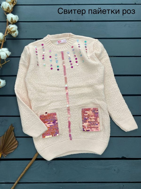 ✔ Нежный, мягкий, удлиненный свитер с пайетками- станет любимым у Вашей малышки! Вязка, Турция! ✔ Размеры: 5-6 – дл 56, рук 44 7-8 – дл 58, рук 46 9-10 – дл 63, рук 49