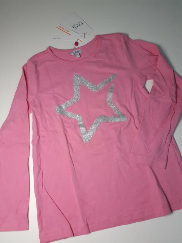 Реглан, свитшот хлопковый, украшен глиттерной звёздочкой. Фирма - OVS, р.133 Состав: 100% хлопок Заміри: Плечі - 28см ПОГ - 36см Довжина рукавів- 46см Довжина - 50см Новый, с биркой