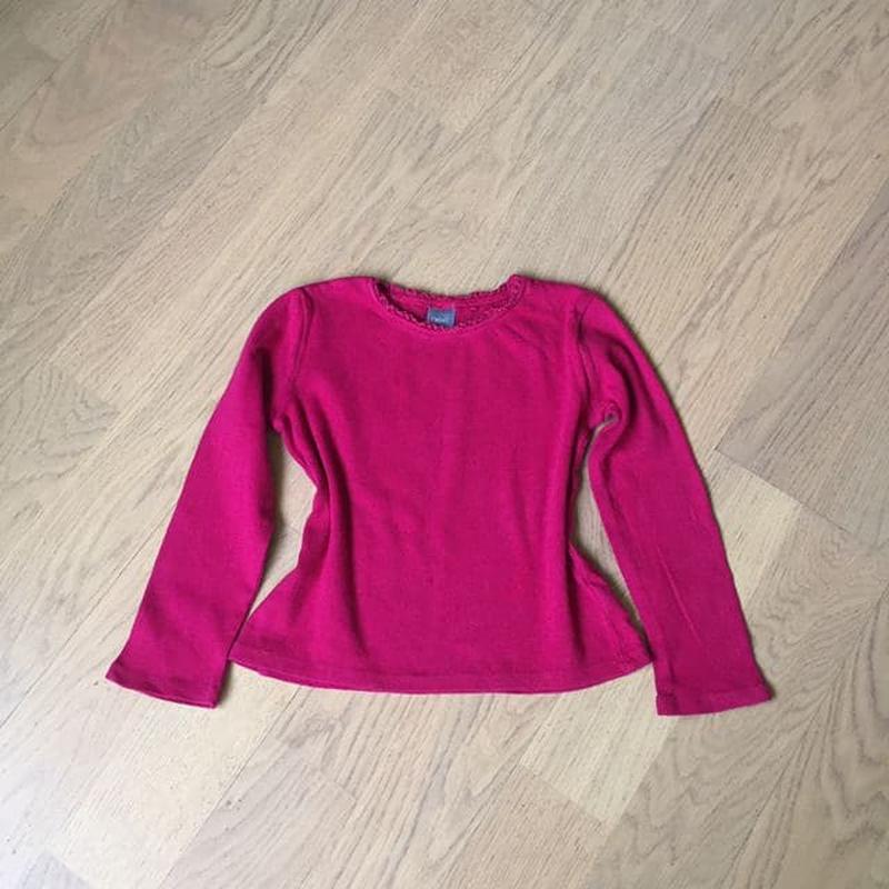 Кофточка от бренда Next . Хорошего качества , ткань плотная , мягкая , приятная к телу , 100% хлопок . Легкий ажурный узор . Горловина декорирована узеньким кружевом . Размер указан 5-6 лет . Замеры : плечи 27 см по груди 33 см длина рукава 38 см длина вещи по спине 35 см . Нюанс : спереди внизу кофточки есть две дырочки . В целом носилась мало , состояние очень хорошее .