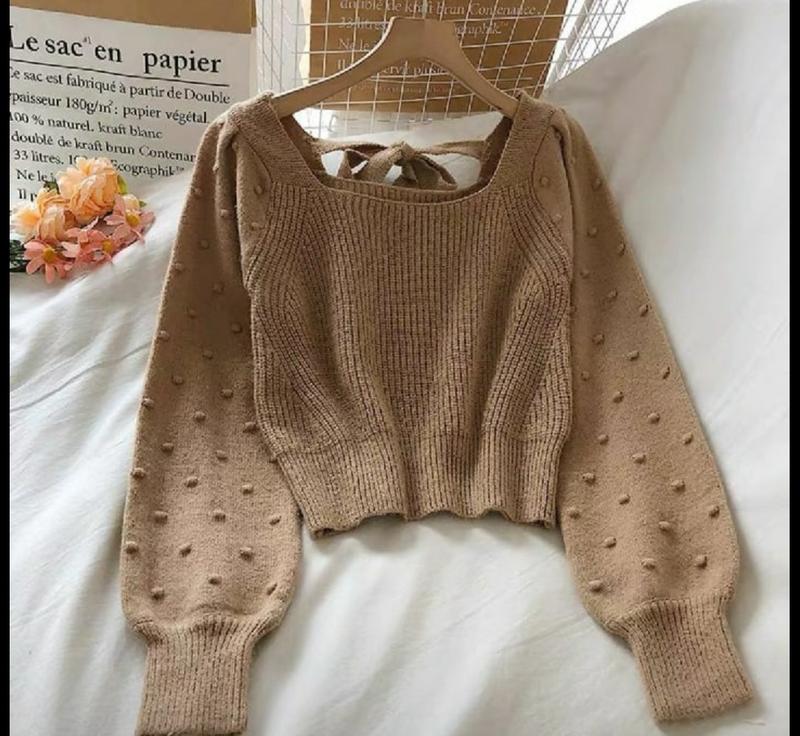 Шерстяной свитер ❤️ Сзади на шее завязывается😍 Мод:441 Цвет: айвори , бежевый, шоколад Размер: 158-164 рост Ткань: шерсть с акрилом Длина 46см