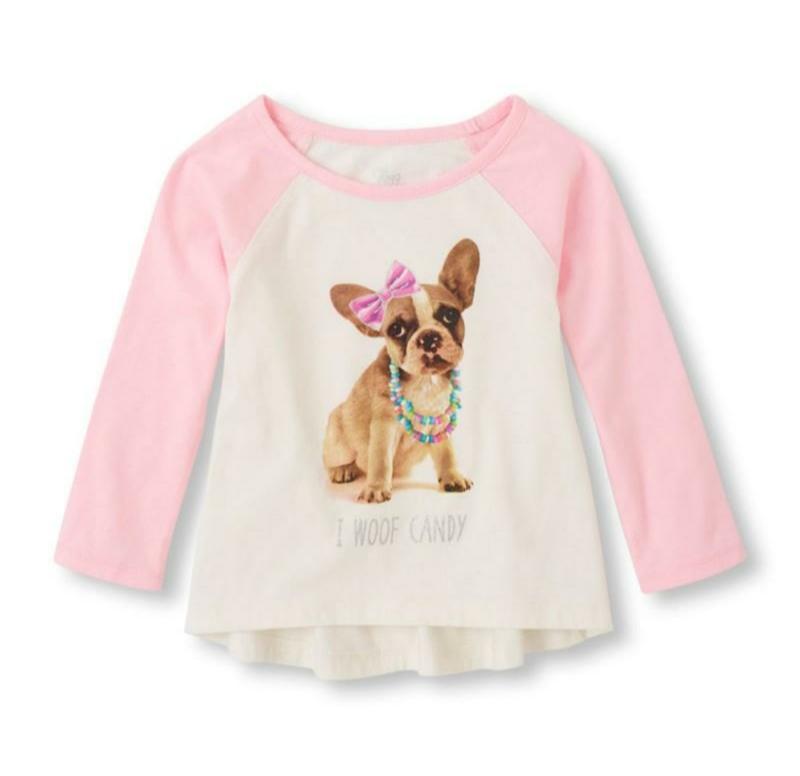 довгий рукав-реглан контрастного кольору, спереду аплікація, донизу розширюється, ззаду довше ніж спереду, розмір 4т