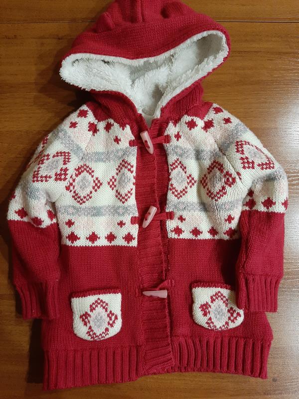 Красивая тёплая кофточка на возраст 1.5-2 годика по бирке, но можно до трёх спокойно. Кофточка на флисе, капешон на меху. Состояние идеальное.