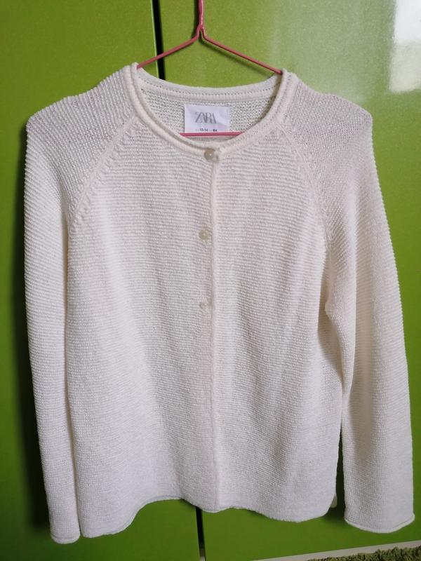 Отличная накидная кофта Zara для праздников, была одета один раз на фотосессию. Возраст указан на 13-14 лет, может быть и на ХС, ориентируйтесь по замерам: длина прим 59 см, полуОГ 46 см, рукав от горловины примерно 68 см.