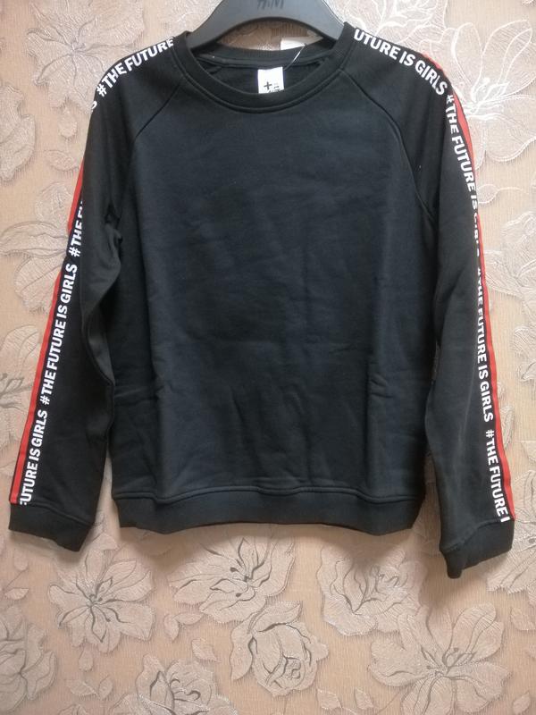 Тепла байкова кофта з полосками і надписами на рукавах