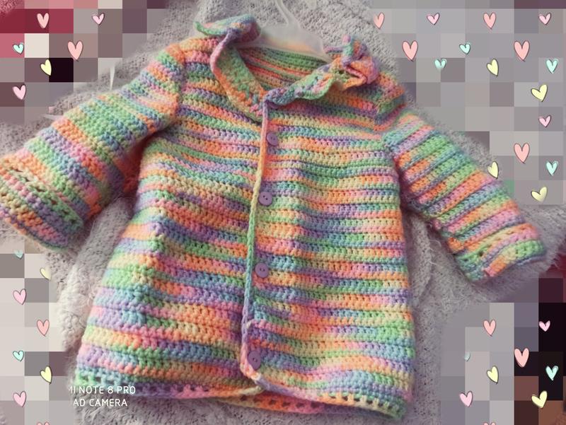 Яркое, ручной работы, пальто-кардиган. Милое красивенькое. Подойдёт для девочки 2-3 лет.