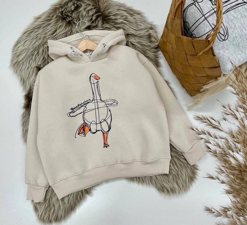 Худі з капюшоном та трендовим якісним прогумованим накатом гусь-обіймусь в капюшоні є утяж...