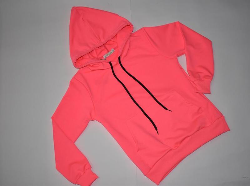 Світшот з капюшоном яскравого рожевого (фото не передає) кольору на зріст 122-134 см. Більшемірить. Виробник Туреччина. Склад 95 % котон, 5 % еластан. 116 - продано 122 см - продано 128 см - продано 134 см - довжина 58 см, ПОГ 43 см, рукав від плечового шва 54 см Відправка Новою та Урпоштою.