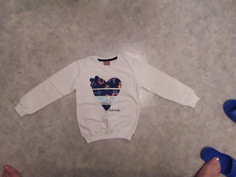 детская кофта утепленная молочно-белого цвета с красивой джинсовой апликацией производство Турция .На бирке размер 122см 7-8 лет