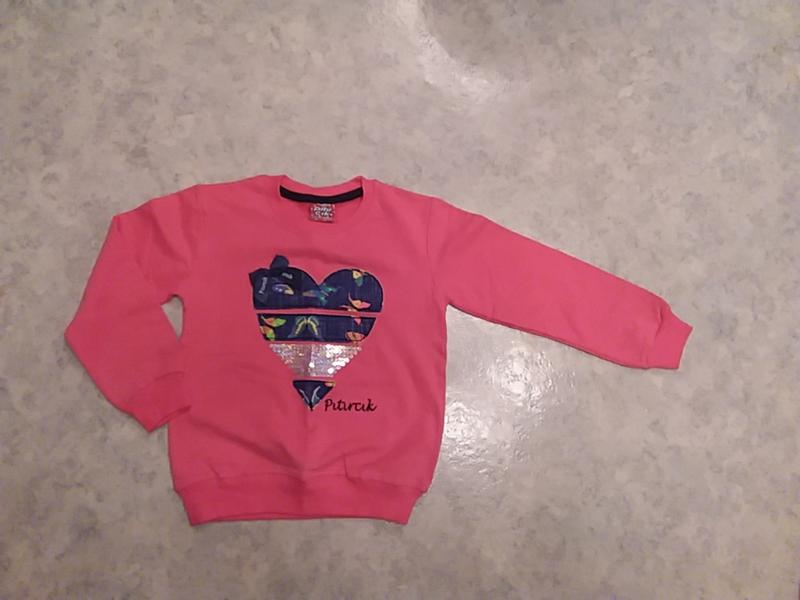 детская кофта утепленная красивого сочно розового цвета с красивой джинсовой апликацией производство Турция .На бирке размер 110см 5-6 лет