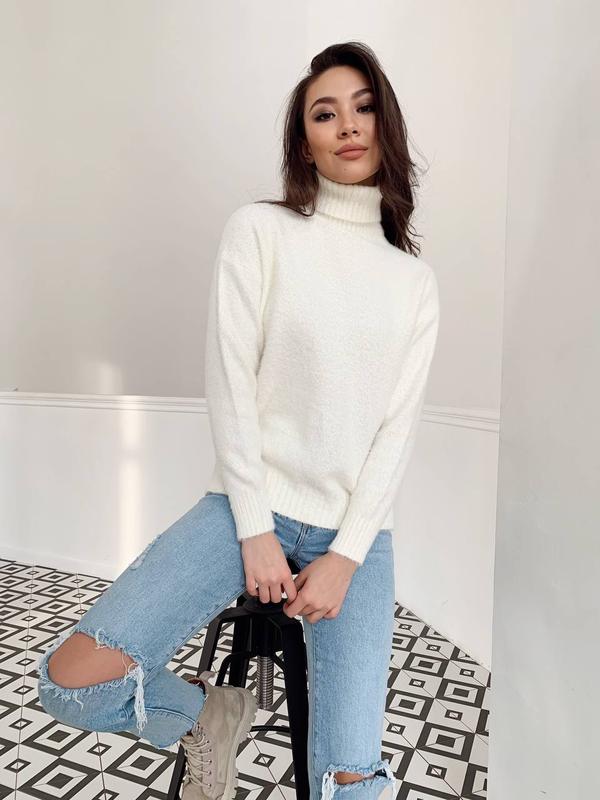 Пушистый свитер под горло❣️ Мод:480 Цвет: белый, пудра, светло-бежевый Размер: универсал Ткань: ангора Длина сзади 60см
