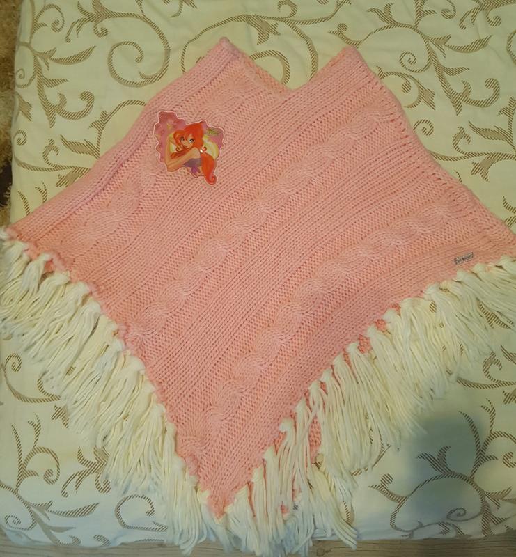 Пончо для девочки с героями мультика "Winx". Абсолютно новое, куплено в Италии. Нежно-розового зефирного цвета с бежевой бахромой по краям. Очень мягкое и приятное на ощупь. Длинна изделия - 55 см, ширина (по самой широкой части) - 70 см, длинна по ручке - 36 см. Все замеры указаны на фото. АКЦИЯ! При покупке этой вещи, вы можете выбрать на моей странице любое украшение с пометкой "бесплатно" в подарок!