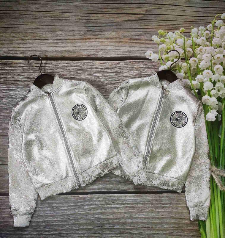 Бомбер для стильнашки ткань тринить петля с серебристым напилением украшен аппликацией со стразами АППЛИКАЦИЯ МОЖЕТ ОТЛИЧАТЬСЯ 128(6 шт)-длина 40,пог 37,рукав 47 140(2 шт)-длина 49,пог 41,рукав 51 152(5 шт)-длина 55,пог 45,рукав 56 164(4 шт)-длина 59,пог 47,рукав 60.ланд