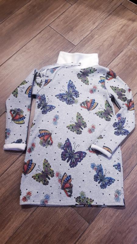 Новенькая,очень тёплая туника на девочку 140см.Не сток.Покупали своему ребёнку,но не попали по размеру.Длина по спинке 65см,длина рукава от плеча 50см,ширина под мышками 40см.