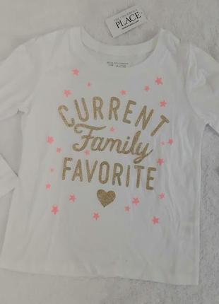 Стильный реглан от Childrens place. Размер 4 Т. Состав - хлопок. Цвет -белый. Очень нарядный.