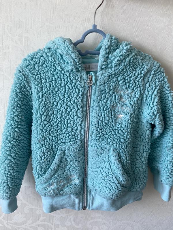 В наличии мягенькая тёплая кофточка для девочки размер 98-104 можно носить как курточку весной. В идеальном состоянии. Замеры длина 36см под мышками 35см рукав 35см . Цвет берюза