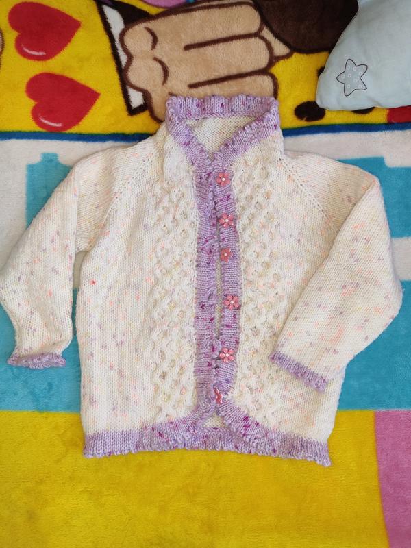 В'язана кофта на гудзиках, ручна робота. Вік приблизно 2-3 роки, стан дуже хороший, без дефектів. Не колючий, тепла.