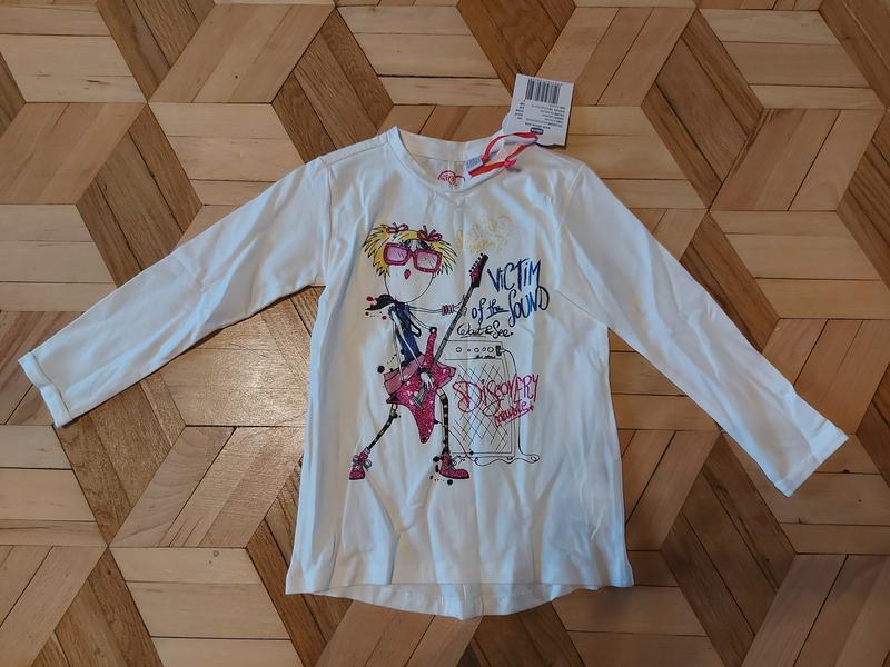 фірмова подовжена кофточка Chicco з цінником, прикрашена малюнком з блискітками. Вік 3 роки і довше.