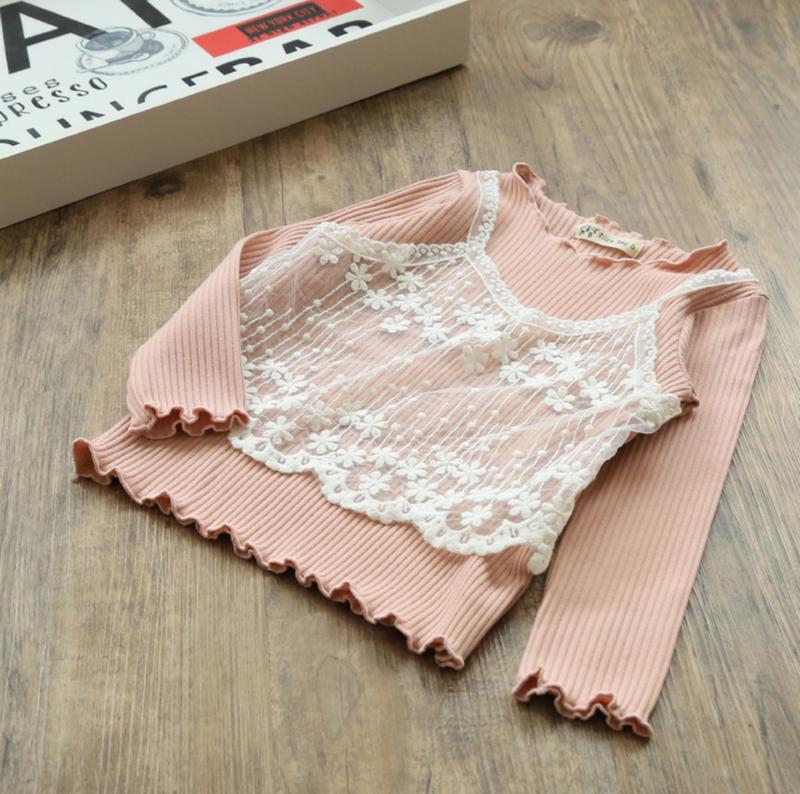 Детская трикотажная кофточка в рубчик. Деккорирована ажурной маечкой и волнистыми краями. Размер 30/32 на рост 120см, ОГ 64 см, длина 45см, длина рукава 38 см. Мягкая, удобная, приятная к телу. Отличный вариант как на праздник, так и на каждый день.