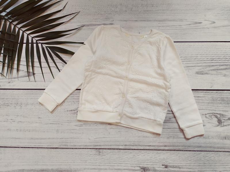 Кофта на гудзиках, піджак Бирки із зазначенням розміру немає, буде на р. 98-104. Заміри: рукав-35 см, пог 28 см, пот 30 см, довжина 34 див. Дуже ошатна і красива. Жодного разу не одягли.