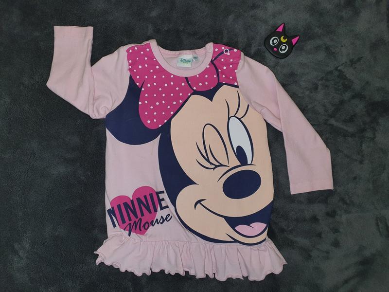 Дитячий лонгслив із зображенням Мінні Маус з мультфільму Міккі Маус і Друзі – порадує маленького супергероя, а також їх батьків) Довжина - 38 см, рукав - 28 см, поп - 21, пог - 28 див.
