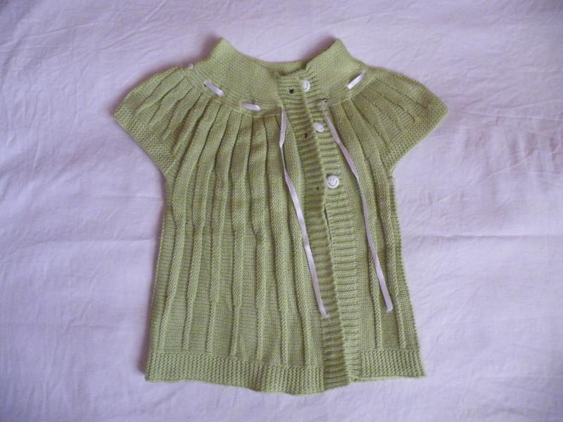 Продам красивую кофточку-накидку на девочку салатового цвета. Состояние отличное. На возраст 1,5-2,5 года, длина по спинке 35см.