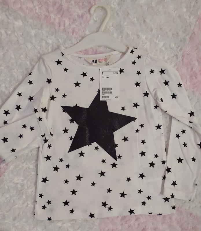 Реглан H&M для девочек на 2-4роке,рост 98/104, 100% коттон, рисунки и надписи с блестками