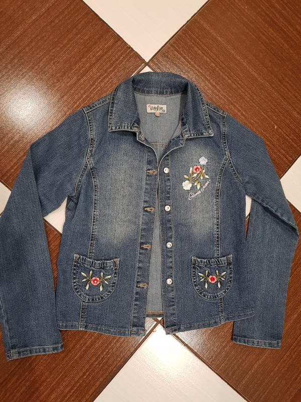 Гарний джинсовий піджачок на дівчинку на зріст 140-146 см. Носила донька. З недоліків можу відмітити відсутність верхнього ґудзика ( на фото видно), але все одно на той ґудзик і не треба застебувати. Продаю, бо на доньку вже замалий. Висота по спині 50 см, ПОГ 39 см, довжина рукава по плечу 56 см ( по внутрішньому шву 44 см). Склад 97% cotton, 3% spandex.