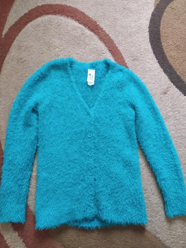 Пушистый кардиган в отличном состоянии, дефектов нет. на 7-10 лет