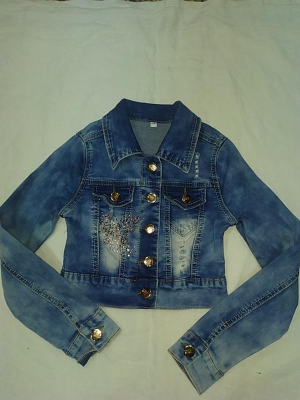 Джинсовая куртка, производство Турция. Замеры: Рост -110 Плечи -26; Длина рукава от плеча -46; Длина по спинке -31; Пог -30 см. Обхват по низу -27см.