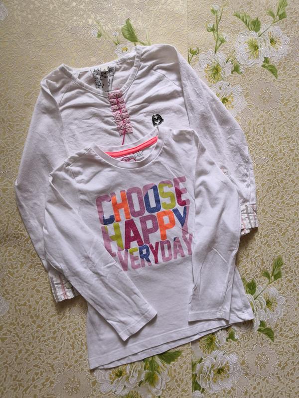 Реглан Chicco на 5 років, зріст 110 см, у складі 100% бавовна. Довжина 40 см, довжина по боковому шву од пахви вниз 27 см, плечі 25 см, напівобхват грудей 31 см, рукав від плеча 37 див. Реглан Magilla на 5 років, зріст 110 див. Склад: 60% бавовна, 40% полістер. Виробник Індія. Довжина 40 см, напівобхват грудей 33 см, рукав від коміра 44 див. Трохи є котышки.
