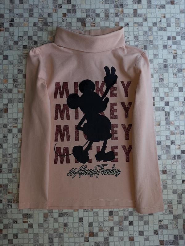 Гольф с принтом Микки Мауса в идеальном состоянии без следов носки(одет раз !! ) длина 38.5 плечи 25.5 под ручками 29 рукав 36 состав : 95 котон, 5 эластан