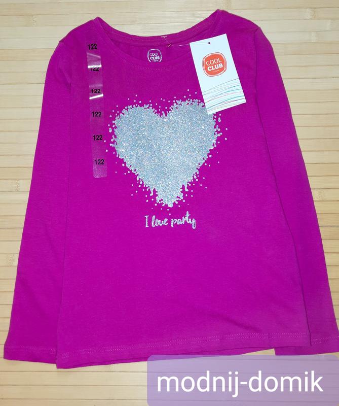 Лонгслив девочке Cool Club яркая , малиновый цвет, декор сердце из блесток р. 122 Цена 190 грн