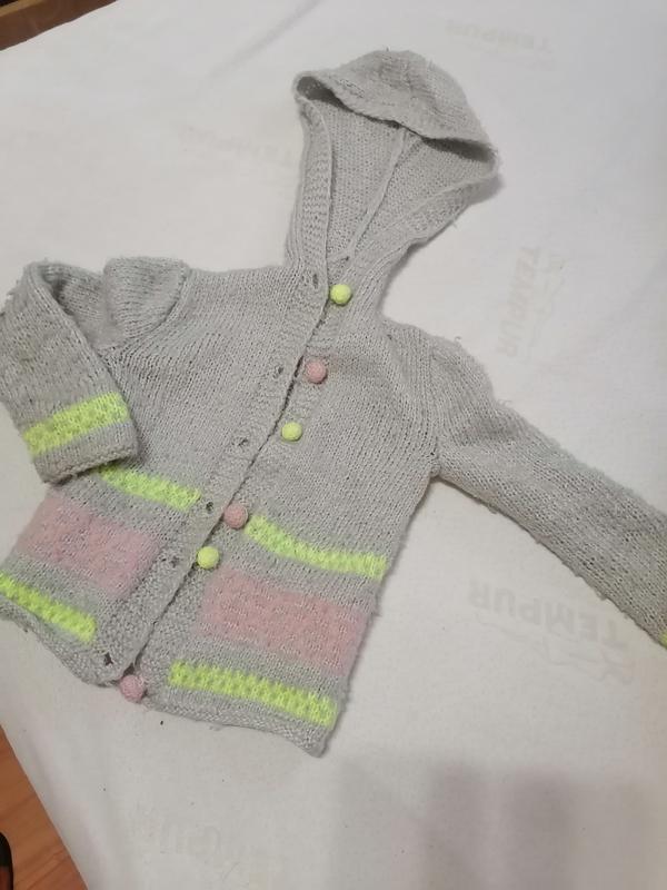 Классная тёплая кофточка с капюшоном на пуговицах