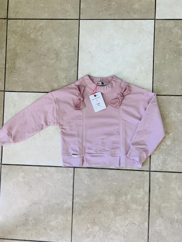 Світшот для дівчинки. Виробництво Україна. Заміри: розмір 116 - ін 31 см, пог 37, д 39; розмір 122 - ін 33 см, пог 37 см, д 41 см; розмір 128 - ін 35 см, пог 39,5, д 44,5; розмір 134 - ін 37 см, пог 40, д 47