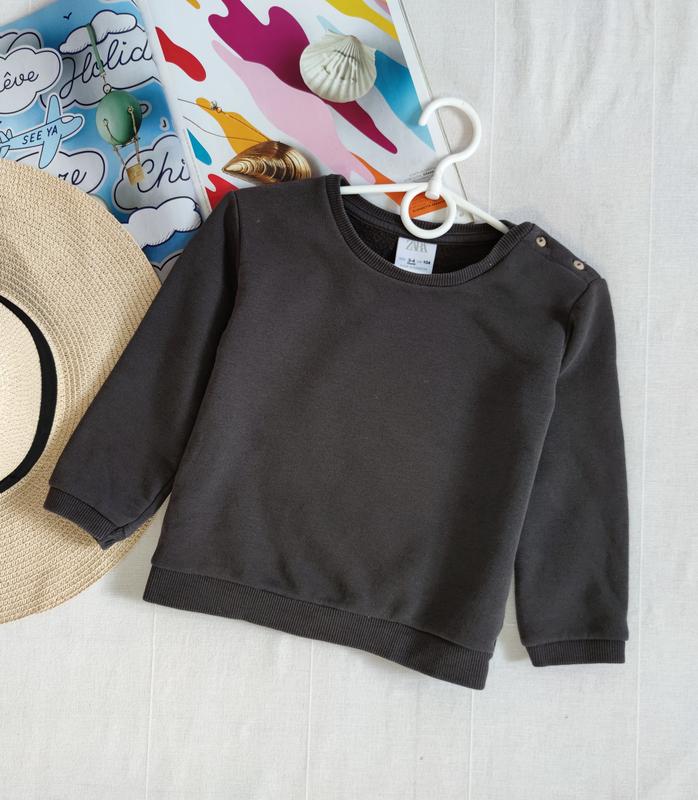 сірий світшот вільного крою від Zara для дівчинки 3/4 років на зріст 104 см, тканина котон, збоку з рюшами, ПО грудей 33 см, довжина 38 см, рукав 30 см