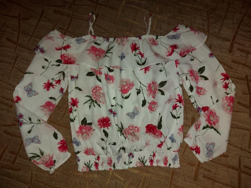 Нарядна кофтинка з відкритими плечима фірми Н&М, бірка 10-11р (140-146), стан ідеальний, тканина приємна на дотик, довж 50+- регулюється, пог 41, рукав 48, приспущений, плечі оголені, до неї є спідничка, ціна 150 грн