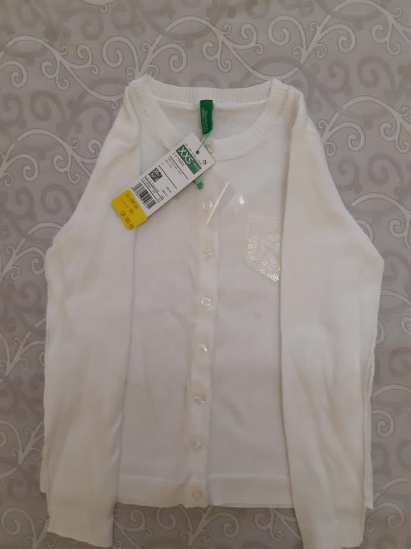дуже гарна кофтина на гудзиках. шов з блискучою ниткою на рукавах та по боках. кишенька прикрашена білими паєтками які переливаються. вік 3-4роки